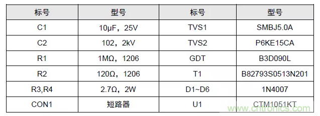 以CAN總線為例,上圖為完善的外圍推薦電路。其中GDT置于最前端,提供一級防護(hù),當(dāng)雷擊、浪涌產(chǎn)生時,GDT瞬間達(dá)到低阻狀態(tài),為瞬時大電流提供泄放通道,將CAN_H、CAN_L間電壓鉗制在二十幾伏范圍內(nèi)。實際取值可根據(jù)防護(hù)等級及器件成本綜合考慮進(jìn)行調(diào)整,R3 與 R4 建議選用 PTC,D1~D6 建議選用快恢復(fù)二極管,參數(shù)表如下。