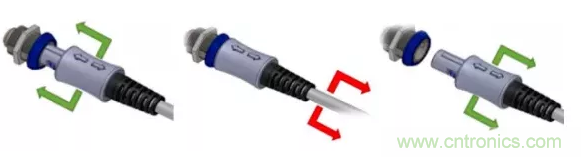 為提高安全性,IEC規(guī)定了鎖定機(jī)制,防止在醫(yī)療過程中意外斷開。鎖定機(jī)構(gòu)通常與電氣連接空間相沖突,有多種形式,如按鈕鎖定(拇指鎖存)、扭轉(zhuǎn)鎖定(通過旋轉(zhuǎn)鎖?。┮约傲餍械耐评i定系統(tǒng),推拉鎖定系統(tǒng)將閉鎖設(shè)計(jì)集成到咬合結(jié)構(gòu)中,消除了其他選項(xiàng)所需的二次動作,緩解它們所面臨的設(shè)計(jì)挑戰(zhàn)。