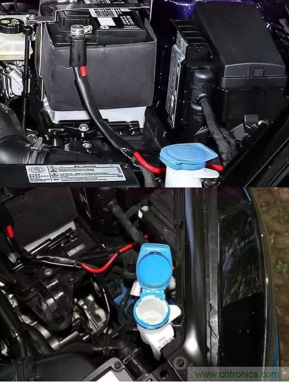 但這不是我們關(guān)注的重點。高爾夫的蓄電池布置在整車左側(cè)靠近駕駛室的地方,機艙電器盒緊挨著蓄電池進行布置。這種布置方式,對于降低線束重量和線束成本非常有利。可以極大的縮短蓄電池到機艙保險盒,機艙保險盒到駕駛室保險盒的粗導(dǎo)線的長度。