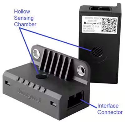 圖 1:Honeywell Sensing and Productivity Solutions 提供的兩款外形相同的電池氣溶膠傳感器:BASC6X-X00 和 BAS6C-H00。BAS6C-X00 是媒介控制單元 1 (MCU1) 版本,而 BAS6C-H00 是較新的媒體控制單元 2 (MCU2) 版本。(圖片來源:Honeywell Sensing and Productivity)