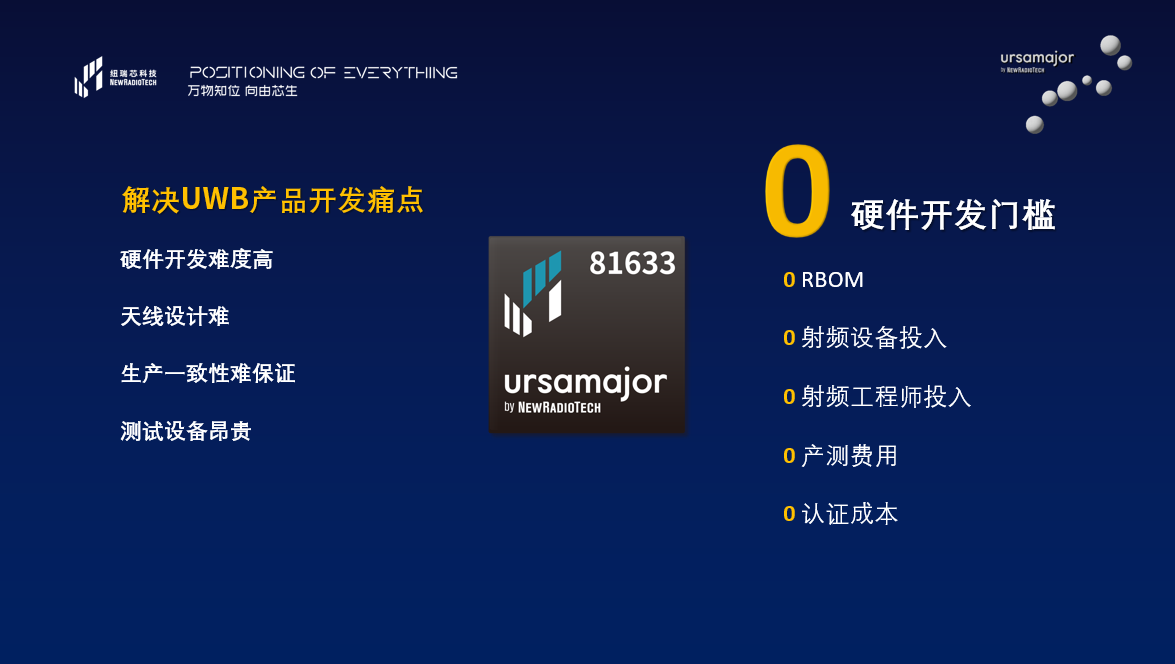 作為一家專注于無線通信技術(shù)芯片領(lǐng)域的先驅(qū)企業(yè),紐瑞芯始終致力于提供最優(yōu)質(zhì)、最高效的產(chǎn)品和解決方案。紐瑞芯在與合作伙伴密切合作的過程中,發(fā)現(xiàn)市場對UWB技術(shù)性能提升越來越急迫,且其應(yīng)用的范圍正在不斷延伸,場景越發(fā)豐富。這次發(fā)布的NRT ursamajor 2.0,是紐瑞芯深度挖掘了這些需求痛點,對現(xiàn)有UWB技術(shù)產(chǎn)品進行優(yōu)化和升級后的成果,旨在提供更加精確、穩(wěn)定、安全的定位通信服務(wù)。——Unleash the power of UWB!