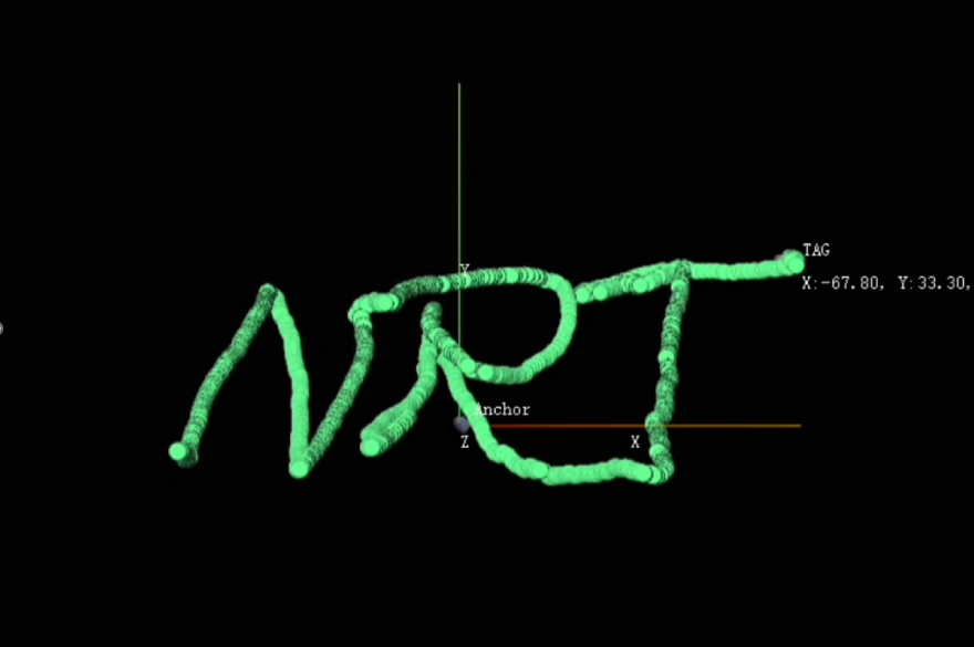 單點測角的誤差方差從1度縮小到0.5度左右,同時實現(xiàn)全空間測角和定位。實驗中可以通過位移精確的寫出文字,如下圖。