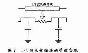 這是一個(gè)180°定向耦合器,也稱(chēng)為rat-race網(wǎng)絡(luò),如圖5所示。物理上可以通過(guò)微帶實(shí)現(xiàn),如圖6所示。然而對(duì)于第1部分提出的710 MHz天線,由于波長(zhǎng)太長(zhǎng),這樣的耦合器在移動(dòng)設(shè)備上無(wú)法實(shí)現(xiàn)。為了實(shí)現(xiàn)去耦合,可以用貼片電感和電容做出成等效傳輸線,從而用電感和電容做成一個(gè)耦合網(wǎng)絡(luò),這就可以顯著降低耦合器占用的體積。如圖7所示,一個(gè)等效1/4波長(zhǎng)傳輸線可以用兩個(gè)電容和一個(gè)電感來(lái)等效代替。電容和電感的計(jì)算公式為: