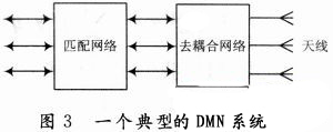 為了提高天線的輻射效率,學(xué)者們提出了DMN技術(shù),即在多個(gè)天線的輸入端先加耦合器以去掉天線之間的耦合,然后加匹配網(wǎng)絡(luò),如圖3所示。文獻(xiàn)對(duì)這種方法進(jìn)行了詳細(xì)論述,并闡述了用S參數(shù)分析正交模的方法。下面對(duì)一個(gè)二端口網(wǎng)絡(luò)的天線進(jìn)行S參數(shù)的分析。