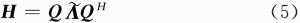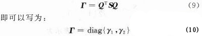 式中:A=diag{λ1,λ2},而Q是幺正的(即QQH=I)。根據(jù)厄米特矩陣的性質(zhì),兩個(gè)正交值λ1和λ2都是實(shí)數(shù),并且小于等于1。將式(5)代入式(4)得: