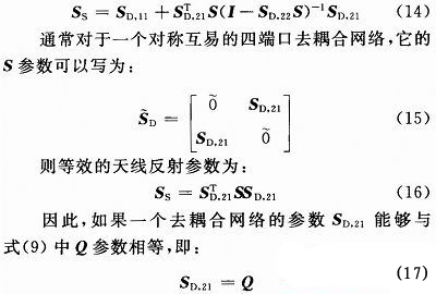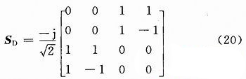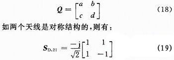 對(duì)于一個(gè)雙天線系統(tǒng),應(yīng)該有兩個(gè)正交模同時(shí)存在,去耦合網(wǎng)絡(luò)是一個(gè)四端口網(wǎng)絡(luò),正交輻射矩陣可以寫(xiě)為:
