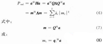 式中:|·|表示復(fù)數(shù)的模,上角標(biāo)H表示厄米特轉(zhuǎn)置。那么,輻射功率就可以表示為: