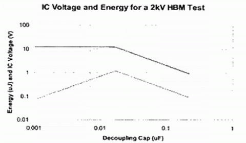- 能夠在瞬間導(dǎo)致IC損壞的能量相當(dāng)于微焦級,有外部去耦電容時,這一考慮非常重要: