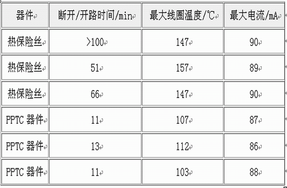表1 熱保險(xiǎn)絲于PPTC器件的性能比較