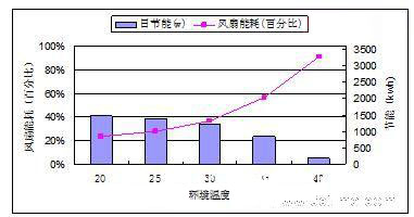 從圖3可看出,隨著環(huán)境溫度的降低,換熱單元的耗能隨至減少。當(dāng)環(huán)境溫度為20度時,換熱單元耗能只是滿負(fù)荷功耗的25%,日可節(jié)約電能約1.5度。
