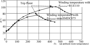 圖2PPTC用變壓器次級(jí)線圈的過(guò)熱保護(hù)特性