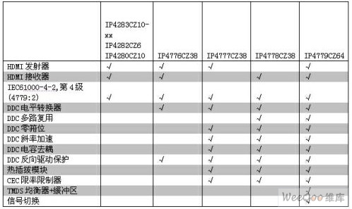 下表列出了恩智浦的主要HDMI接口調(diào)節(jié)和ESD保護(hù)設(shè)備的重要功能。