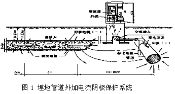 傳統(tǒng)的管道防腐方法是在管道上涂上油漆或纏繞復合材料作為防腐絕緣層,采用這種方式防腐的管道因防腐層容易脫落和易受腐蝕,故其使用壽命短,施工繁瑣,防腐效果差?,F(xiàn)代的管道防腐一般采用電化學原理,實行陰極保護的方法,向被保護金屬管道通入合適的直流電,使其對于陽極接地裝置變成一個大陰極,對保護管道形成保護電位,從而使腐蝕降低到最低限度,進而延長管道的使用壽命。