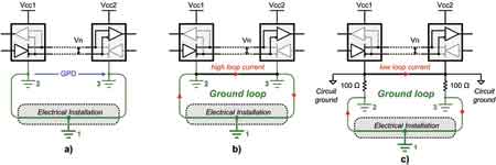 就僅限于一個本地電源供電的電路而言,GPD不會導致什么問題。在設計兩個遠程電路間的通信鏈路時(即現(xiàn)場總線-收發(fā)器站),GPD就變得引人關注了,這兩個遠程電路間的通信鏈路由不同的電源供電。