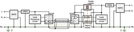 如隔離式DC/DC轉換器的電源隔離器以及如數(shù)字電容隔離器的信號隔離器避免了電流環(huán)路的創(chuàng)建及電流在具高達數(shù)千伏GPD的遠程系統(tǒng)接地間流動。