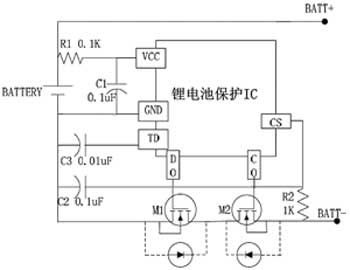 單節(jié)鋰電池保護IC的應(yīng)用電路很簡單,只需外接2個電阻、2個電容和2個MOSFET,其典型應(yīng)用電路如圖1所示。