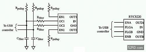 在常用的電源開關(guān)實施方案中,電容器和電阻器被用于在故障旗標(biāo)信號中產(chǎn)生時間延遲,而Raychem的PowerSwitch內(nèi)置了這一特性,并且避免了在電路板上另外設(shè)置電路。故障旗標(biāo)延遲能夠防止沖擊電流導(dǎo)致埠端發(fā)生誤動作,并使所連接的設(shè)備能夠開始正常運作。為了進一步減少外部零件的數(shù)量,Raychem的PowerSwitch分別為啟動引線和標(biāo)志引線(FLGA和FLGB)集成了上拉和下拉電阻器。