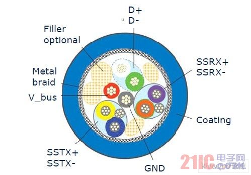 圖2a:USB3.0電纜結(jié)構(gòu)。