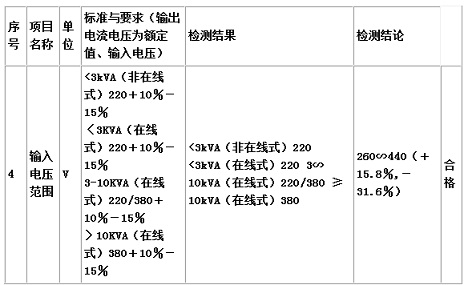 (2)寬輸入電壓范圍。輸入電壓允許范圍為+15%~-30%,在中大功率UPS當(dāng)中還未見(jiàn)到另一品牌UPS經(jīng)過(guò)權(quán)威單位檢測(cè)達(dá)到此指標(biāo),如附表所示。