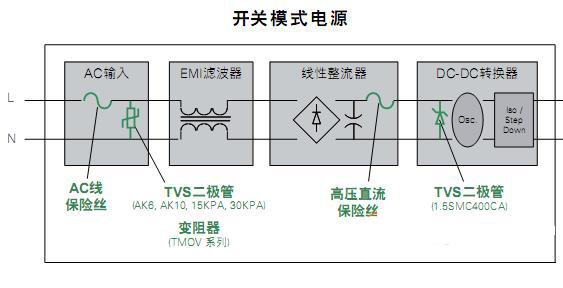 在開(kāi)關(guān)電源部分,LF推薦的過(guò)流和過(guò)壓保護(hù)方案如下: