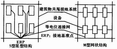 (4)等電位保護。電子設(shè)備的機柜機架、金屬外殼、金屬管槽、屏蔽線纜外層、信息設(shè)備的防靜電接地端、安全保護接地端、浪涌保護接地端等,在同等電位連接網(wǎng)絡(luò)的接地端子相連接時,均需采用最短的距離??刂葡到y(tǒng)的等電位連接,通常分為“S型星型結(jié)構(gòu)”以及“M型網(wǎng)狀結(jié)構(gòu)兩種”,其中在控制系統(tǒng)中設(shè)備較少或者進行局部控制時通常采用S型星型結(jié)構(gòu),而在相對較大的控制系統(tǒng)中則采用M型的網(wǎng)狀結(jié)構(gòu)。等電位連接的基本方式如圖3所示。