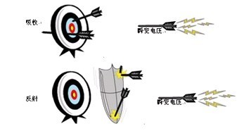 簡而言之,SPD 會阻止具有破壞性的瞬變電壓浪涌電平到達所保護的設(shè)備。SPD 通過吸收過剩的電壓、將其分流或者組合使用這兩種手段,達到削弱浪涌電壓的目的。圖 1顯示了飛向靶子的箭。靶子代表 SPD,而箭代表瞬變電壓尖峰脈沖。當(dāng)箭擊中靶子時,它會被吸收并滯留在靶子中。然而,靶子的厚度將決定箭是否可以在沒有穿到另一側(cè)時停止。同樣,在這種模式下,箭將不停地損壞靶子,將來靶子可能無法很好地阻止箭。現(xiàn)在,假設(shè)在靶子前面有一個金屬盾牌。箭發(fā)出后,它會擊中盾牌,無任何損害地彈飛到靶子的旁邊。這就是大多數(shù) SPD 的基本工作原理。SPD 吸收能量(并且根據(jù)它們的質(zhì)地好壞,可以防止浪涌,但仍然會受到損壞),或者將電壓分流到設(shè)備接地線中。在大多數(shù)情況下,SPD 會將吸收和分流瞬變電壓浪涌的設(shè)備組合使用。