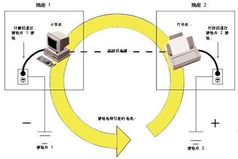 工廠設(shè)施中的接地連接只能連接到電力線路配電板上的單一連接點。這種與地面單點連接的方式可以避免由于疏忽而造成多個接地點。多個接地點會造成市電電壓的差異,導(dǎo)致不希望的電流流向低壓數(shù)據(jù)線。并對數(shù)據(jù)傳輸造成噪音干擾,雖然不會引起太大的損害,但也可能會形成瞬變電壓浪涌,嚴重損壞設(shè)備傳輸線。圖 2 顯示了一個接地回路示例。每個設(shè)備獨立接地(每個電源插座都參照不同的接地點)。如果設(shè)備通過某種形式的接地(也導(dǎo)電)數(shù)據(jù)線連接在一起,就會出現(xiàn)問題。在圖2 中,計算機使用并行通信電纜連接到打印機。如果所使用設(shè)備接地點之間存在電勢差(有電荷差異),那么電流可能會通過并行電纜從一個設(shè)備流到另一設(shè)備,以便中和電荷。這就是“接地回路”,會對設(shè)備造成嚴重損壞,因為設(shè)備在正常條件下只需很小的電力就 可以工作。雖然這個示例只顯示了一處設(shè)施,但接地回路也可以在不同設(shè)施之間形成。