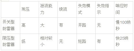 開關(guān)型防雷器和限壓型防雷器的區(qū)別