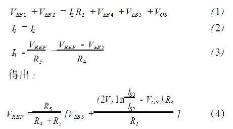 從式(4)中可以看出2 ln ( IS3 / IS2 ) VT相對(duì)于ln( IS3 / IS2 )VT受失調(diào)電壓VOS的影響明顯減少,即級(jí)連二極管的采用使基準(zhǔn)電壓受運(yùn)放失調(diào)影響減少?! ?br />