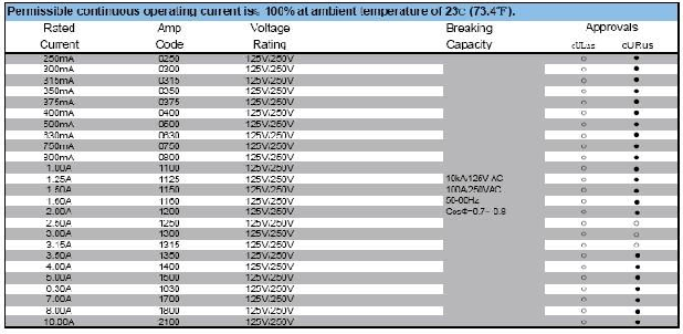512系列: 額定電壓:交流250V, 延時(shí),500 mA 到15A