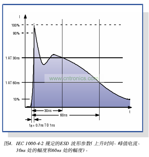 .采用模擬人體產(chǎn)生的靜電放電波形進(jìn)行測試。不同電路模型規(guī)定不同的幅值、上升/下降時間和功率。