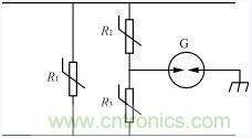 圖4是氣體放電管和壓敏電阻組合構(gòu)成的浪涌抑制電路。由于壓敏電阻有一致命缺點(diǎn):具有不穩(wěn)定的漏電流,性能較差的壓敏電阻使用一段時(shí)間后,因漏電流變大可能會(huì)發(fā)熱自爆。為解決這一問題在壓敏電阻之間串入氣體放電管。但這又帶來了缺點(diǎn)就是反應(yīng)時(shí)間為各器件的反應(yīng)時(shí)間之和。例如壓敏電阻的反應(yīng)時(shí)間為25ns,氣體放電管的反應(yīng)時(shí)間為100ns,則圖4的R2,G,R3的反應(yīng)時(shí)間為150ns,為改善反應(yīng)時(shí)間加入R1壓敏電阻,這樣可使反應(yīng)時(shí)間為25ns。