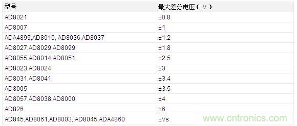 為了解決這一問題,首先盡量選擇具有較高差分電壓額定值的放大器。遺憾的是,放大器的選擇可能還會考慮其他諸多參數(shù)(但差分輸入保護不是其中的參數(shù))。放大器數(shù)據表中絕對最大額定值的選擇通常表明其最大差分輸入電壓。如果性能指標小于±Vs,則提供某些內置輸入保護。電壓越低,電路表現(xiàn)出截止狀態(tài)隔離度的可能就越大。表1給出所選放大器的差分電壓額定值。
