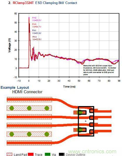 圖2:低的ESD鉗位電壓應(yīng)用分析一