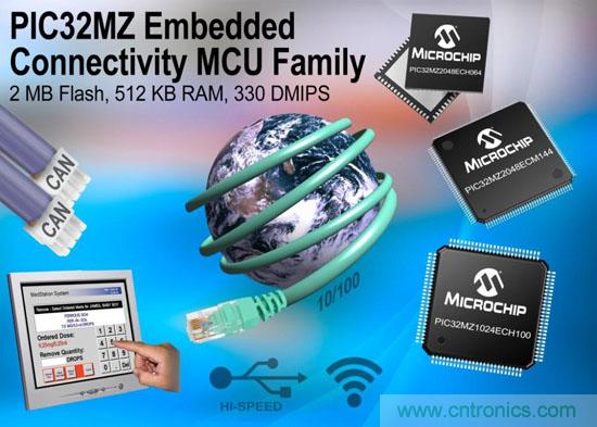 全球領(lǐng)先的整合單片機、混合信號、模擬器件和閃存專利解決方案的供應(yīng)商——Microchip Technology Inc.(美國微芯科技公司)宣布推出兩款最新創(chuàng)新產(chǎn)品。擁有24款器件的全新PIC32MZ嵌入式連接(EC)系列32位MCU提供了330 DMIPS和3.28 CoreMarks™/MHz的卓越性能,以及有雙存儲區(qū)的現(xiàn)場升級閃存(高達2 MB)、512 KB的大容量RAM,以及支持當(dāng)今要求嚴(yán)苛的應(yīng)用所需的連接外設(shè)。同時,Microchip還推出了業(yè)界最全面的32位單片機固件開發(fā)框架——MPLAB® Harmony。該框架是第一款把許可、轉(zhuǎn)售及支持Microchip和第三方中間件、驅(qū)動程序、函數(shù)庫和實時操作系統(tǒng)集成于一體的產(chǎn)品,簡化了包括全新PIC32MZ系列在內(nèi)的所有32位MCU的開發(fā)過程,縮短了集成和上市所需的時間。