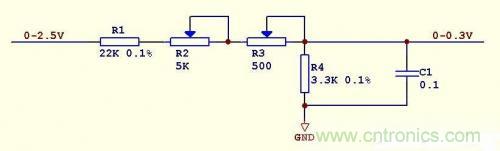 對(duì)地電阻并電容C1,獲得低通濾波器,轉(zhuǎn)折頻率f=1/2piC1(R4//(R1+R2+R3))《zc=1kHz,C1》0.054uF,實(shí)際取0.1uF。