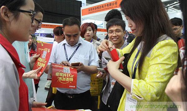 電子商務(wù)平臺的崛起,也使得營銷手段更加花樣百出地貼近消費者,再也不是以前坐等顧客上門挑選的被動局面,分銷商在展館里可謂是使出十八般武藝,力圖能激起消費者翻牌的欲望。這不,原先四處走動的觀眾,瞬間被抽中一百塊現(xiàn)金紅包的歡呼聲給吸引了過去,筆者也前往一探究竟,原來是華強電子網(wǎng)的展位上進(jìn)行的免費認(rèn)證超級買家抽紅包的活動。