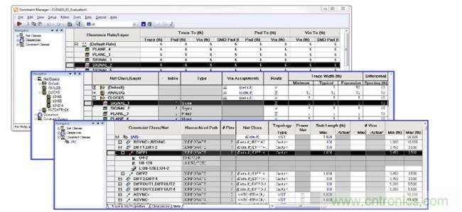 當今的關(guān)鍵高速設(shè)計異常復雜,如果沒有有效的手段來管理約束規(guī)則,則對走線、拓撲和信號延遲等方面的設(shè)計、約束和管理將會變得異常困難。為了在第一次迭代中就構(gòu)建出成功的產(chǎn)品,必須在設(shè)計流程的早期設(shè)置約束規(guī)則,以便設(shè)計達到要求的目標。良好的約束規(guī)則管理可防止您使用價格高昂或無法采購到的元件,并且最終確保電路板符合性能和制造要求。