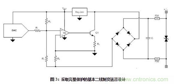 【導(dǎo)讀】在熟知變送器設(shè)計和運(yùn)行的前提下,本文將討論如何設(shè)計保護(hù)這些系統(tǒng)的電路。文章中的圖片為基本的二線制變送器設(shè)計供參考。