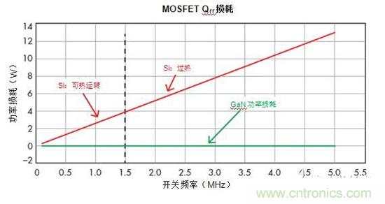 1.相比GaN替代品,MOSFET的反向恢復(fù)電荷(Qrr)損耗在較高頻率下要大得多。