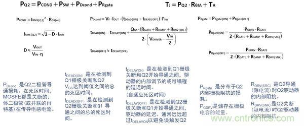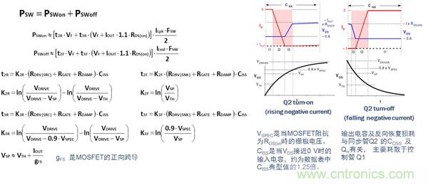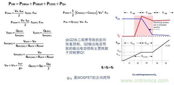 對(duì)于高頻應(yīng)用(>MHz),控制管Q1的選用應(yīng)針對(duì)降低開(kāi)關(guān)損耗進(jìn)行優(yōu)化。Q1損耗的計(jì)算公式如下: