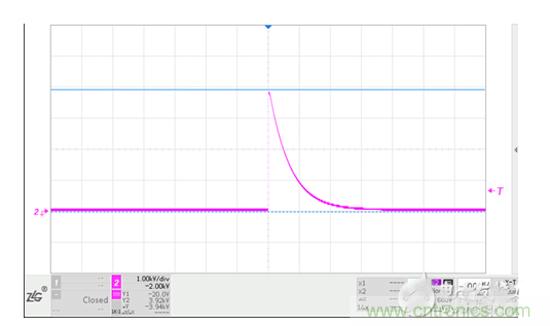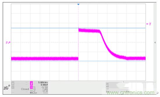 以SP00S12模塊為例,它可以滿足 IEC/EN61000-4-5 ±4KV 浪涌等級要求,可用于各種信號傳輸系統(tǒng),抑制雷擊、浪涌、過壓等有害信號,對設(shè)備信號端口進(jìn)行保護(hù),非常適合于CAN、 RS-485 等通信領(lǐng)域的浪涌防護(hù)。以共模浪涌測試為例,在SP00S12輸入端加載4KV、 1.2/50μs 浪涌電壓(圖4),在輸出端測試壓降已被降低至17.1V(圖5)。