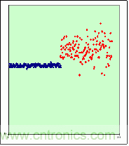 因?yàn)閲?guó)內(nèi)電網(wǎng)質(zhì)量不一,在一些質(zhì)量差的地區(qū),容易影響電磁爐觸摸按鍵的正常工作。如果不能做電源隔離,就會(huì)看到一下圖6的差別(藍(lán)色表示無(wú)按鍵,紅色表示鍵被按下),而這些圖還只是在電磁爐沒(méi)有開(kāi)功率的情況下的,當(dāng)電磁爐工作時(shí)產(chǎn)生的電磁輻射將會(huì)使看到的信號(hào)更加雜亂無(wú)章。在實(shí)驗(yàn)中發(fā)現(xiàn),采用與外界電網(wǎng)隔離或使用軟件濾波,按鍵效果都能得到明顯改善。