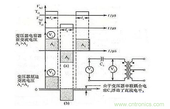 如果要這種不平衡的波形驅動變壓器,將會發(fā)生偏磁現(xiàn)象,致使鐵心飽和并產(chǎn)生過大的晶體管集電極電流,從而降低了變換器的效率,使晶體管失控,甚至燒毀。