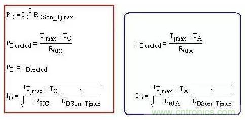 ID定義為芯片在最大額定結溫TJ(max)下,管表面溫度在25℃或者更高溫度下,可允許的最大連續(xù)直流電流。該參數為結與管殼之間額定熱阻RθJC和管殼溫度的函數: