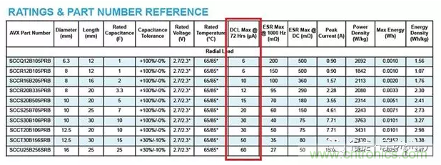 大多數超級電容器數據表顯示了在額定直流電壓和室溫下的漏電流性能,例如AVX的SC系列超級電容器的信息。