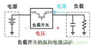 與MOS管一樣,負(fù)載開關(guān)可在關(guān)閉時阻止兩個方向上的電流(如下圖設(shè)計)。