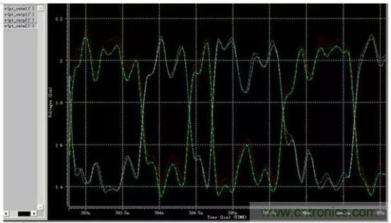 通過差分對IN,OUT的HSPICE仿真,圖6顯示的結(jié)果:差分對線的對稱良好。