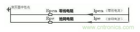 在這樣的供電系統(tǒng)中地線和零線合二為一稱之為PEN線,值得注意的是這種系統(tǒng)中的PEN線需要在配電網(wǎng)中重復(fù)接地形成一個(gè)接地網(wǎng),以保證PEN線的零電位。