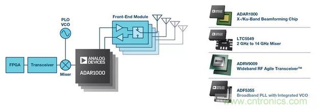 該波束成形IC專為模擬相控陣應(yīng)用或混合陣列架構(gòu)而開發(fā),混合陣列架構(gòu)將一些數(shù)字波束成形技術(shù)與模擬波束成形技術(shù)結(jié)合了起來。ADI公司提供從天線到位的完整解決方案,包括數(shù)據(jù)轉(zhuǎn)換器、頻率轉(zhuǎn)換、模擬波束成形IC以及前端模塊。組合芯片組使ADI公司能夠?qū)⒍喾N功能組合起來并對IC進行適當優(yōu)化,從而輕松地為客戶實現(xiàn)天線設(shè)計。